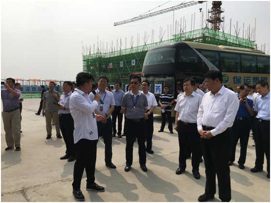 科技成就事業(yè),實(shí)干引領(lǐng)未來。在中國共產(chǎn)黨建黨97周年之際,7月1日,河北省委常委、常務(wù)副省長袁桐利帶隊(duì)河北省重點(diǎn)項(xiàng)目建設(shè)觀摩組,在保定市委副書記、市政府市長郭建英,保定市委常委、常務(wù)副市長李俊嶺等領(lǐng)導(dǎo)陪同下,重點(diǎn)圍繞華訊方舟集團(tuán)中國天谷•河北太赫茲國際科技產(chǎn)業(yè)基地項(xiàng)目建設(shè)的新進(jìn)展、新成效、新亮點(diǎn)進(jìn)行現(xiàn)場觀摩調(diào)度。保定市徐水區(qū)委書記蘇樹鋒、華訊方舟集團(tuán)高級副總裁丁慶、集團(tuán)高級副總裁孫宏鶴、集團(tuán)副總裁兼河北華訊天谷總經(jīng)理彭輝熱情接待觀摩組一行。